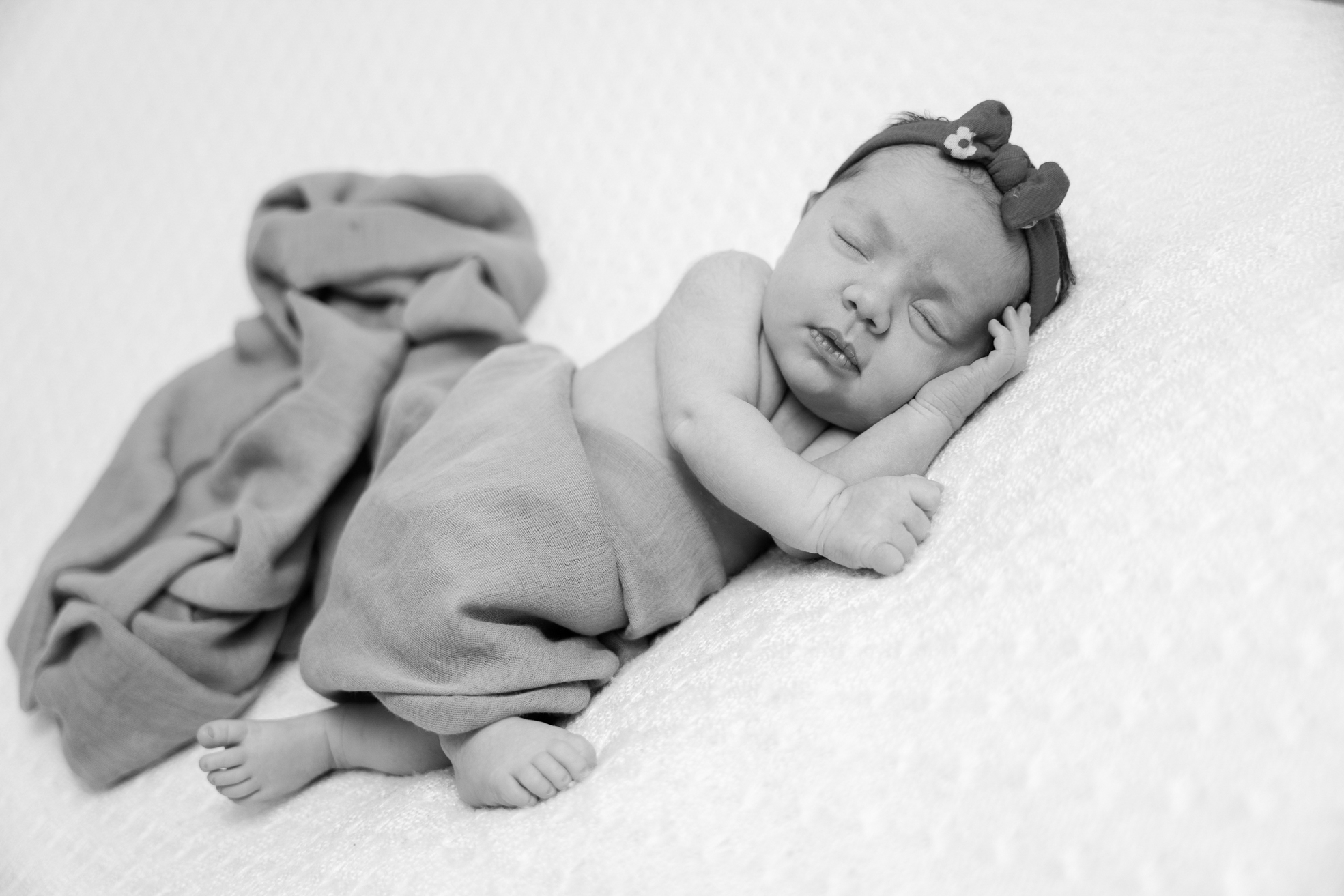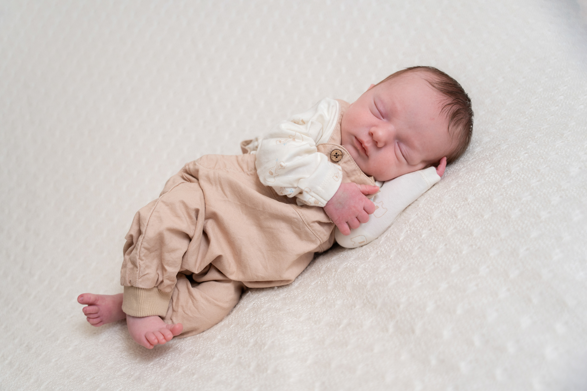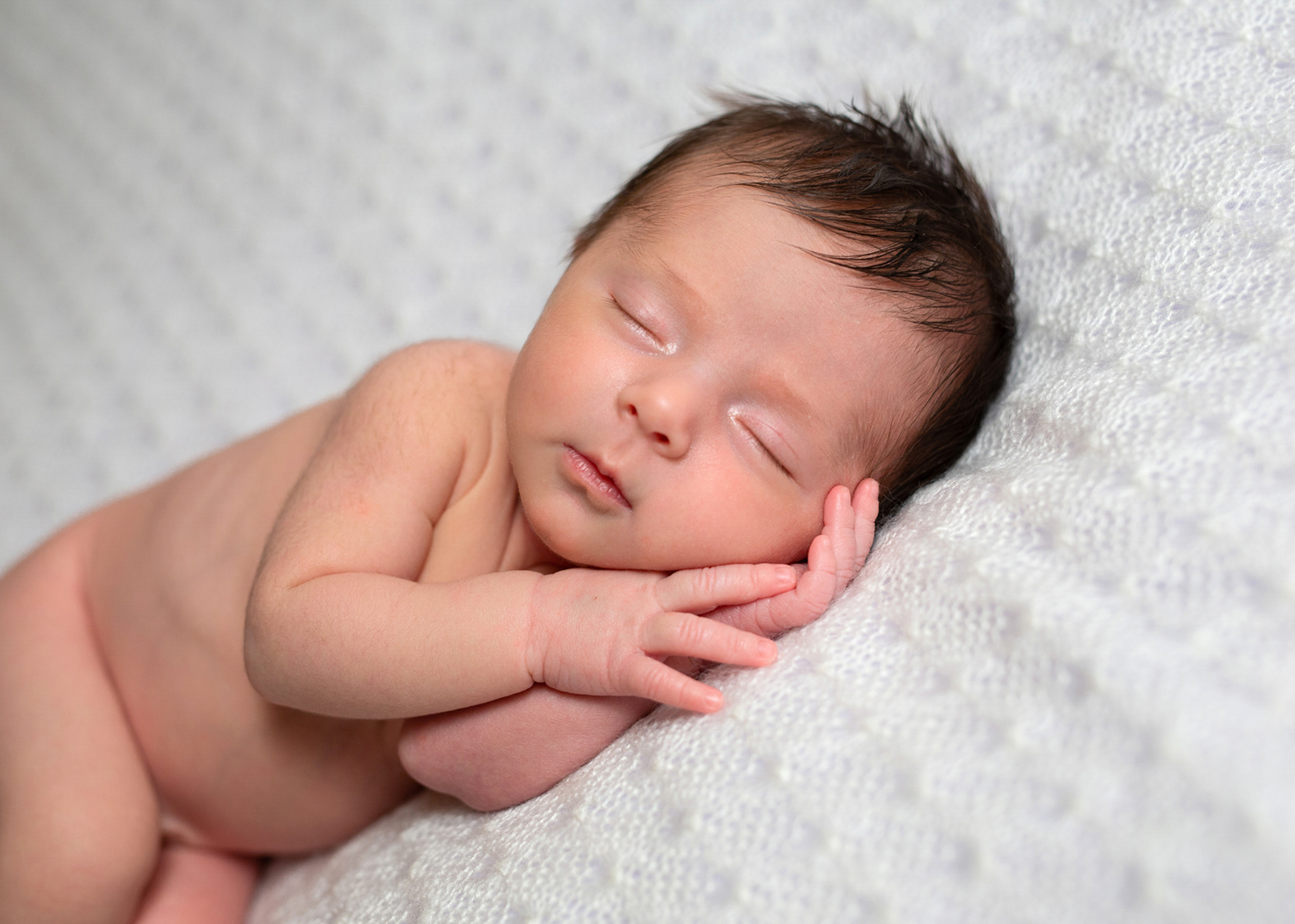 L’idéal est de planifier la séance photo dans les 10 premiers jours après la naissance, lorsque votre bébé dort encore beaucoup et garde cette position fœtale si attendrissante.